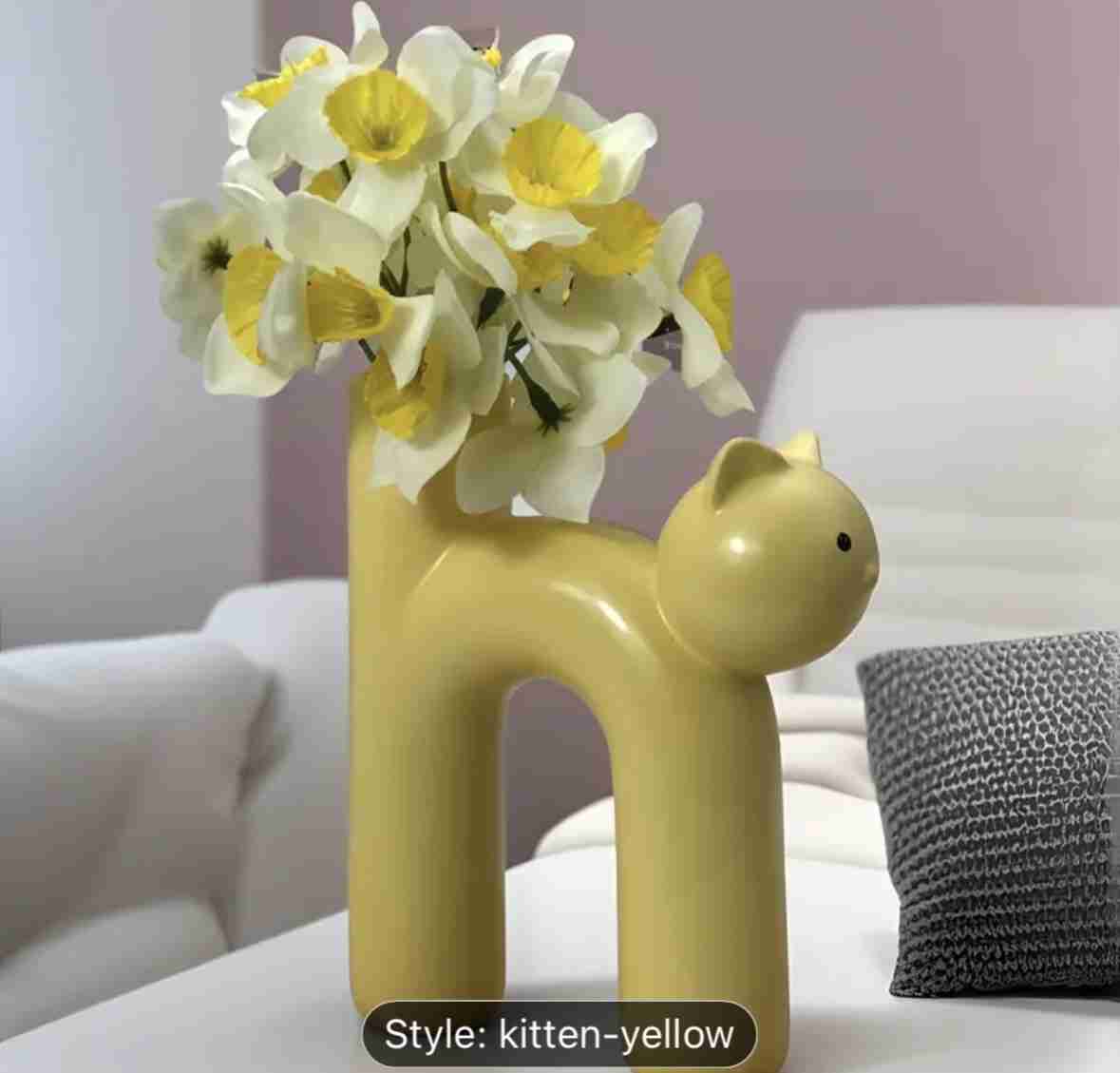 A small, one-piece Nordic-style resin cat vase that’s both whimsical and decorative.