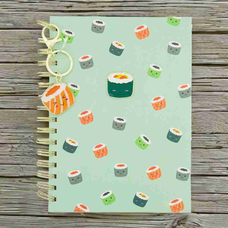 Home Shop Notebooks Green Sushi Rolls Spiral Notebook With Keychain 22x16cm